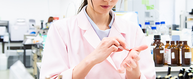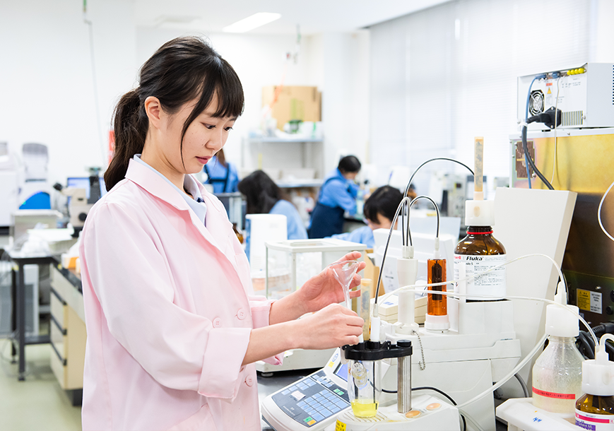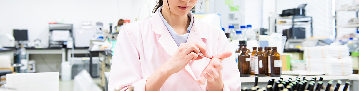 私の部署は処方設計(企画された商品を量産するための設計)ですが、開発の要素や機会も多い職場です。決められた商品の開発だけではなく、自分なりの研究テーマを追求する時間もあります。例えば、個人で1年ごとに「年間テーマ」を設定して研究に取り組むことができます。新しい処方に取り組んで発表したり、実際にお客様に提案したりもできます。「開発部にいなくても開発の機会がある」というのは大きな魅力です。